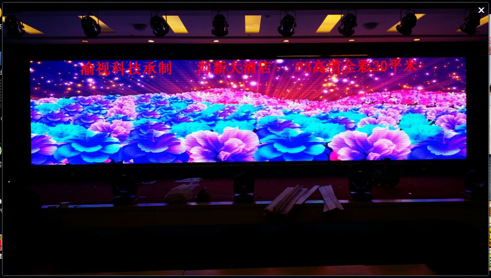 海新酒店室内P3全彩,总面积30平米。是目前酒店小间距屏的代表。主要用于会议播放,文娱表演,宴会等。效果清晰,适合近距离观看!